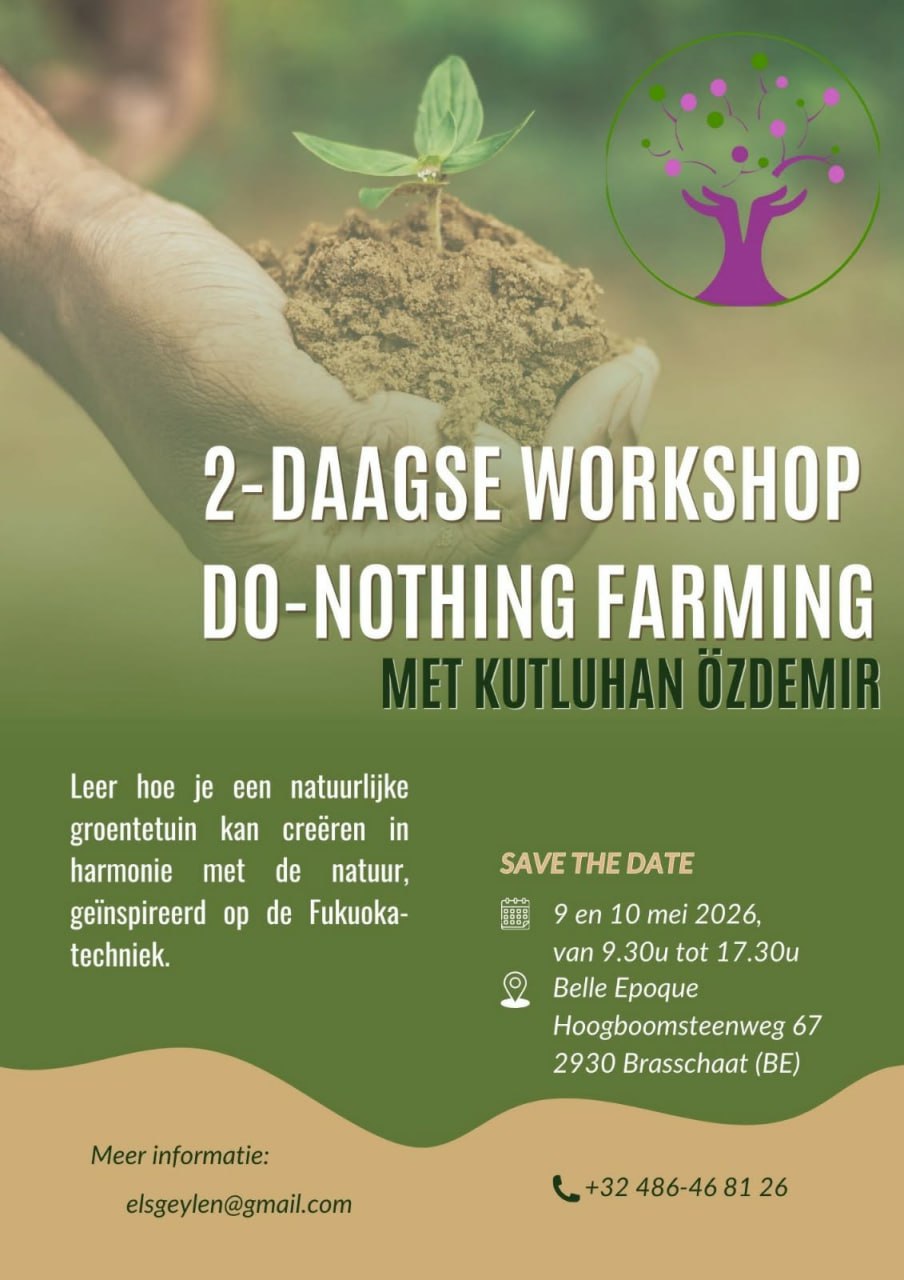 Met een paar geïnteresseerden volgden we zelf een weekendworkshop in het voorjaar van 2022 in Nederland. We werden diep geraakt door de inhoud van Fukuoka’s boodschap die Kutluhan mee verspreidt en zijn hands on aanpak die de tools geeft om zelf een natural farming moestuin op te starten. Kutluhan brengt dit heel inspirerend, in alle eenvoud, helderheid en hartelijkheid. Dus nodigden we hem in het najaar uit naar Vlaanderen om ook vele anderen de gelegenheid te geven om dit mee te maken. Sindsdien werden er in iedere provincie van Vlaanderen – en ook Nederlands Limburg - workshops georganiseerd. Daaruit ontstond een bruisende beweging. Zeshonderd deelnemers in een paar maanden tijd, die geraakt werden en zelf aan de slag gingen. Je vindt de initiatieven en veel meer info op deze website, waaronder de Levende voorbeelden.